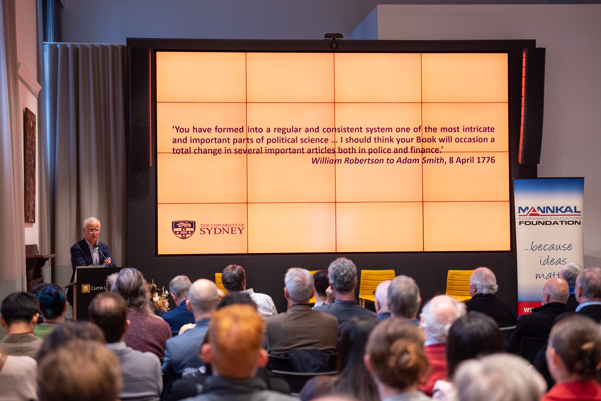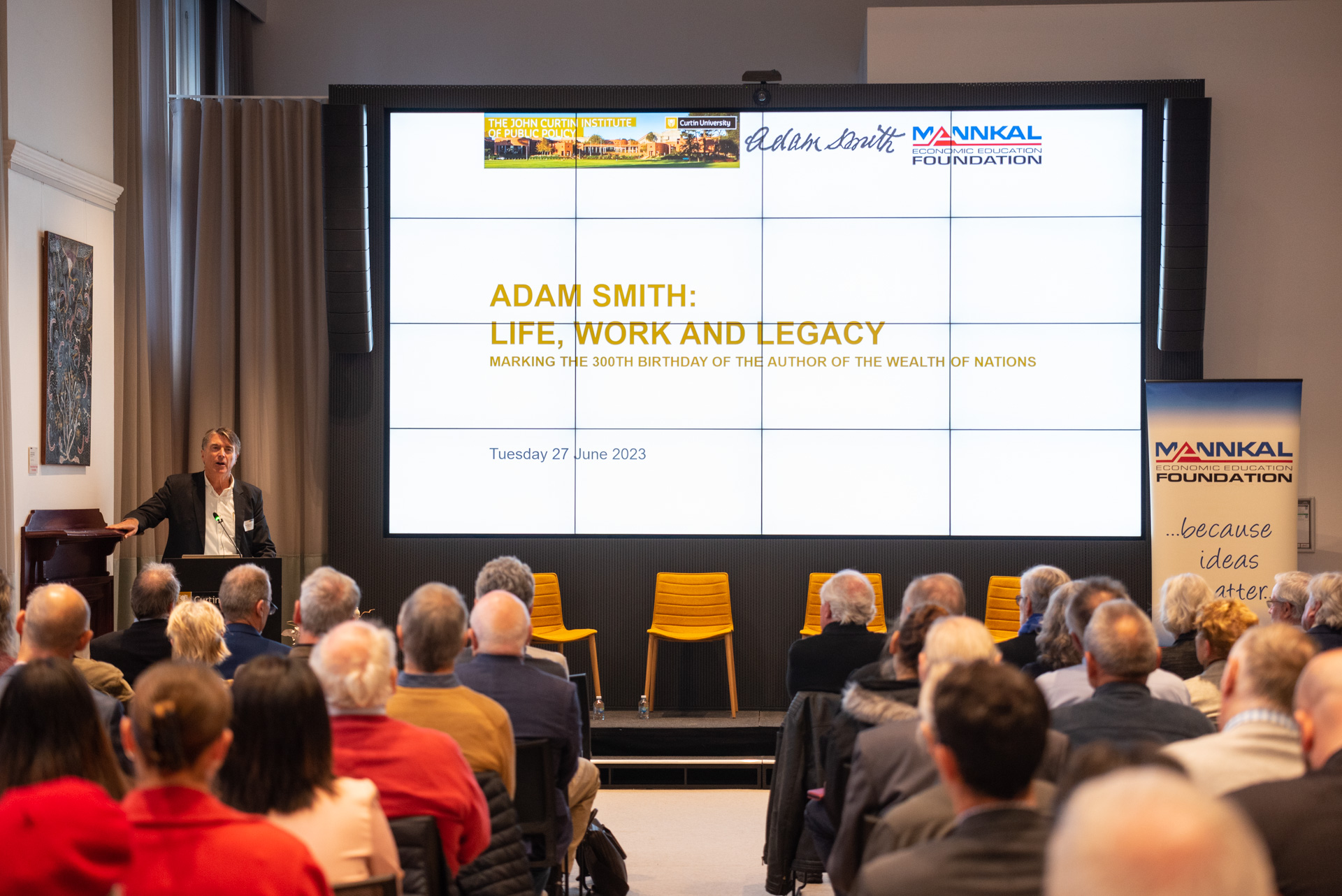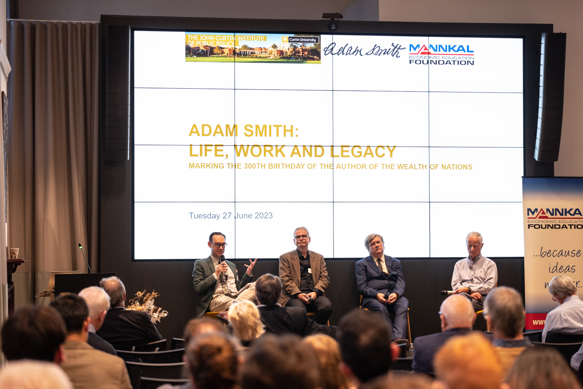 The John Curtin Institute of Public Policy hosted an event featuring leading academics celebrating Smith’s contributions and his relevance to today. The room was full with people keen to learn more about one of histories brightest minds.Â
