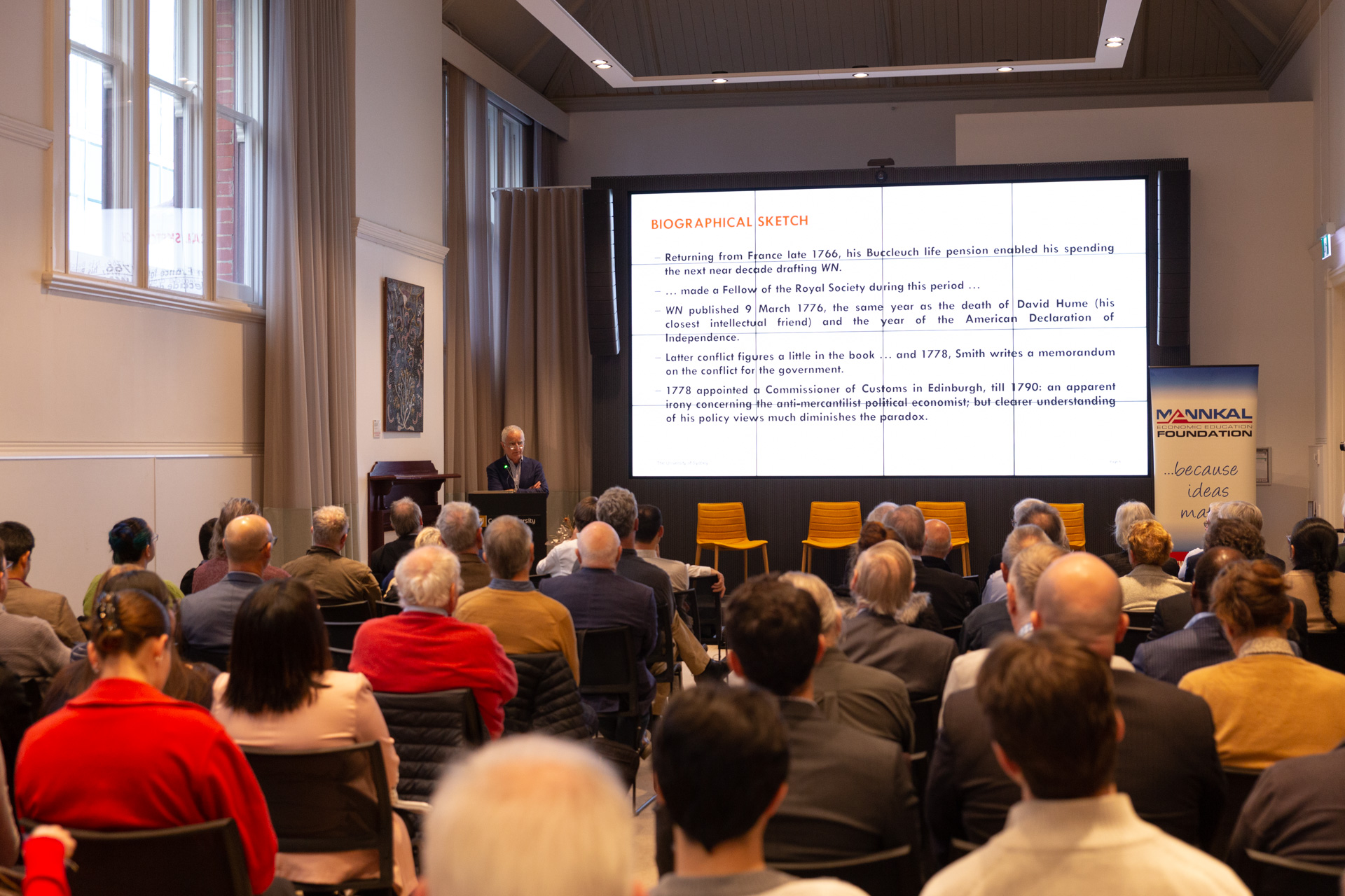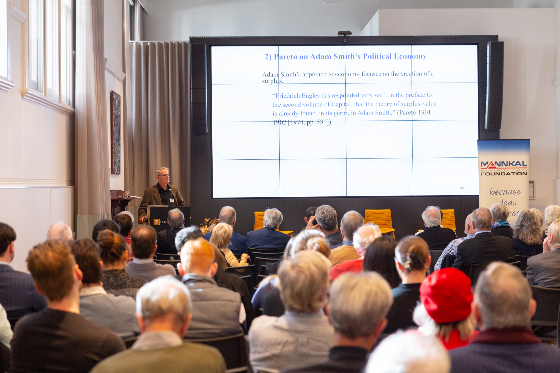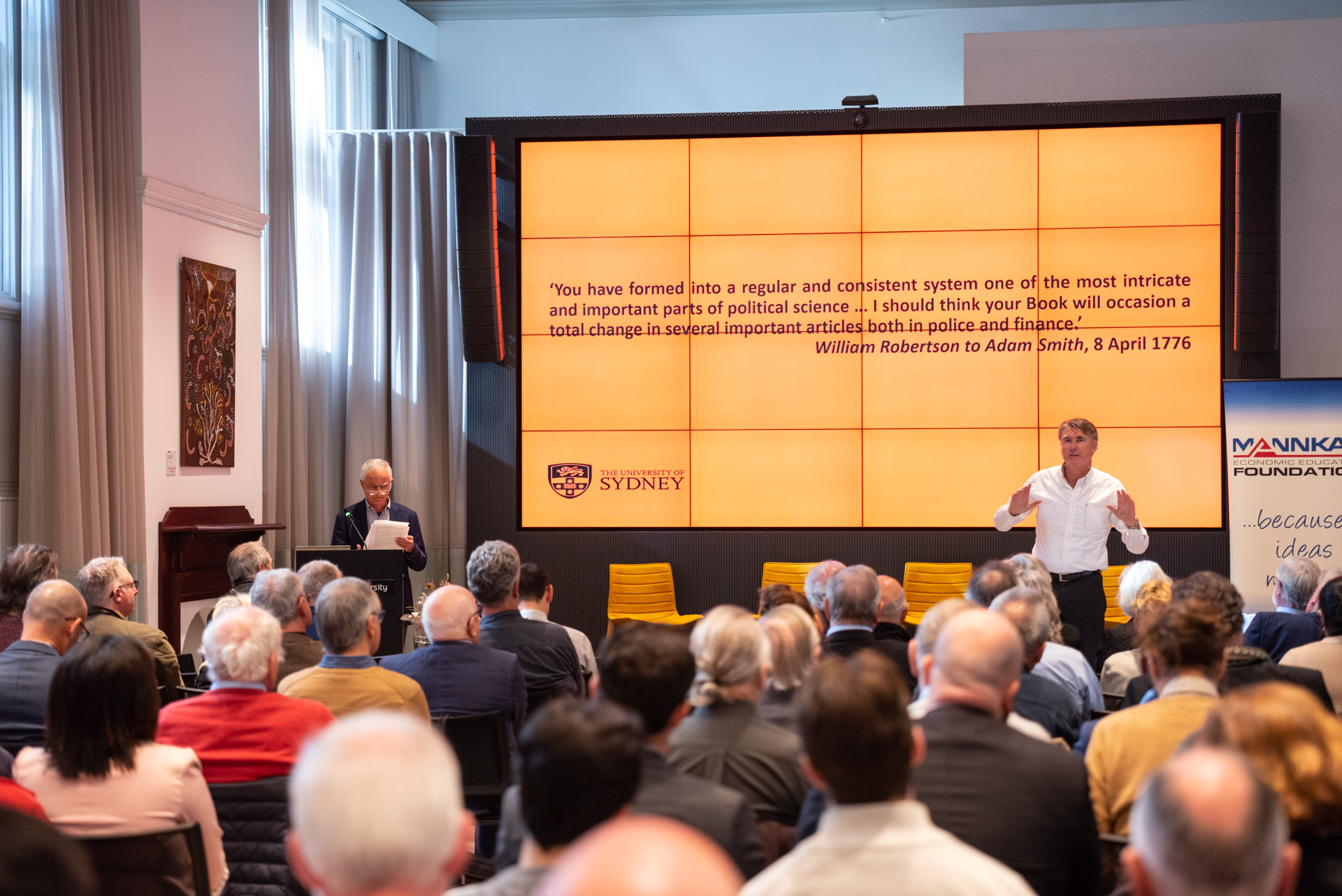 The John Curtin Institute of Public Policy hosted an event featuring leading academics celebrating Smith’s contributions and his relevance to today. The room was full with people keen to learn more about one of histories brightest minds.Â